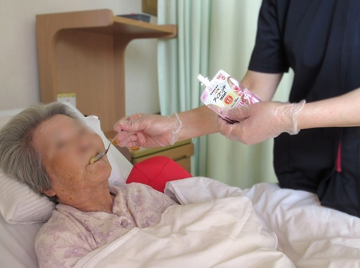 アップリードミニはちょっとした酸味があるので、甘い濃厚流動食が苦手な方でも飲みやすいのかなと思います。入所者さんの中には、「ご飯は食べたくないけどアップリードミニ1本だったらいいよ」と言ってくださる方もいらっしゃいます。