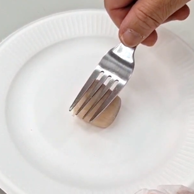 強い力を加えたり、フォークを前後したりせず、側面で押すだけで切れるようなイメージ。