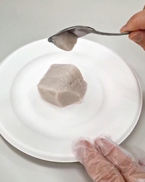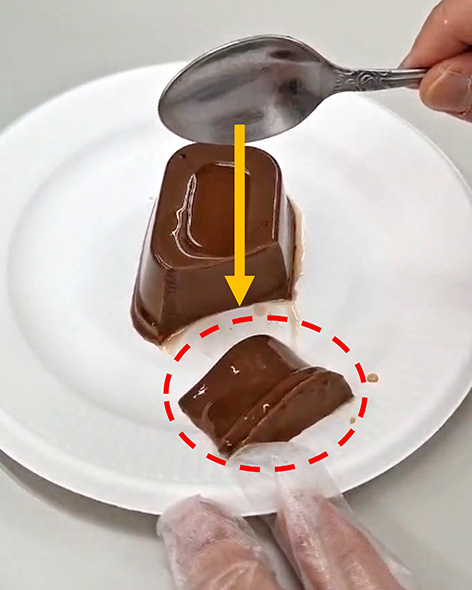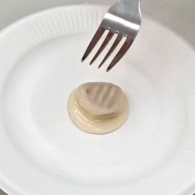 圧をかけてもつぶれず、フォークを離すとかたちが元に戻ってしまう。
