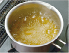 鍋に、飲み物・汁物と酵素入りゲル化材を入れ、かき混ぜながらひと煮立ちさせます。